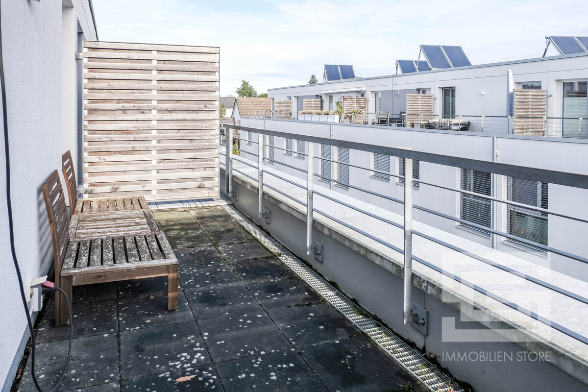 Es gibt noch ein Loftgeschoss mit einem lichtstarken Studiozimmer und Zugang zur Dachterrasse sowie ein modern ausgestattetes Wellnessbad mit Dusche.