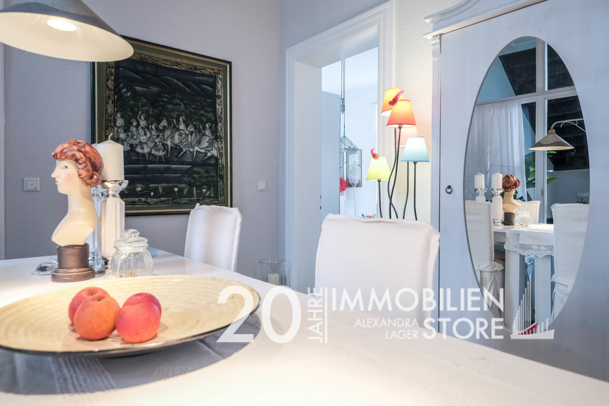 – frisch renoviert – außergewöhnliches Raumempfinden – absolute Privatsphäre – hohe Decken – Einbauküche – 2 stilvolle, modernisierte Wellnessbäder mit Dusche davon eins mit freistehender Badewanne – Kassettentüren – Stellplatz 65,00€ monatl. (die Anmietung weiterer Stellplätze ist möglich)