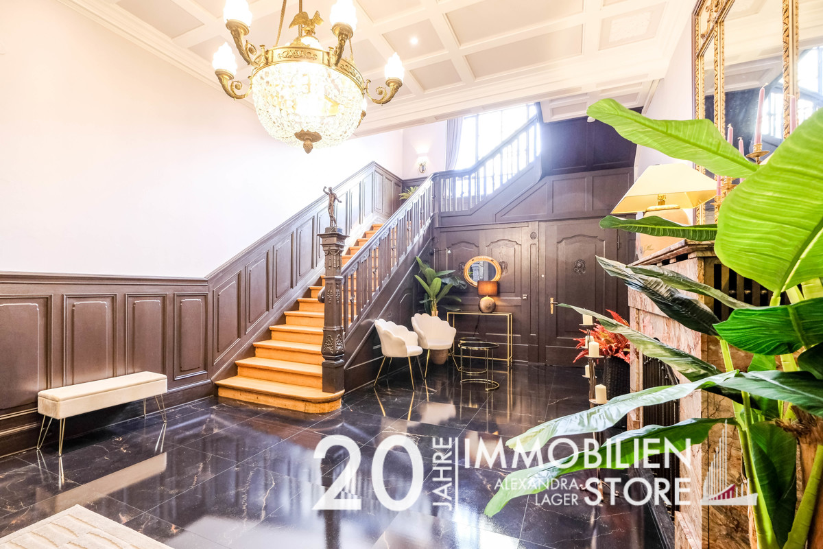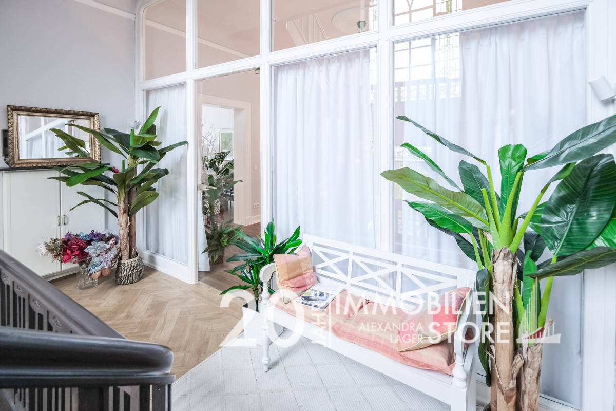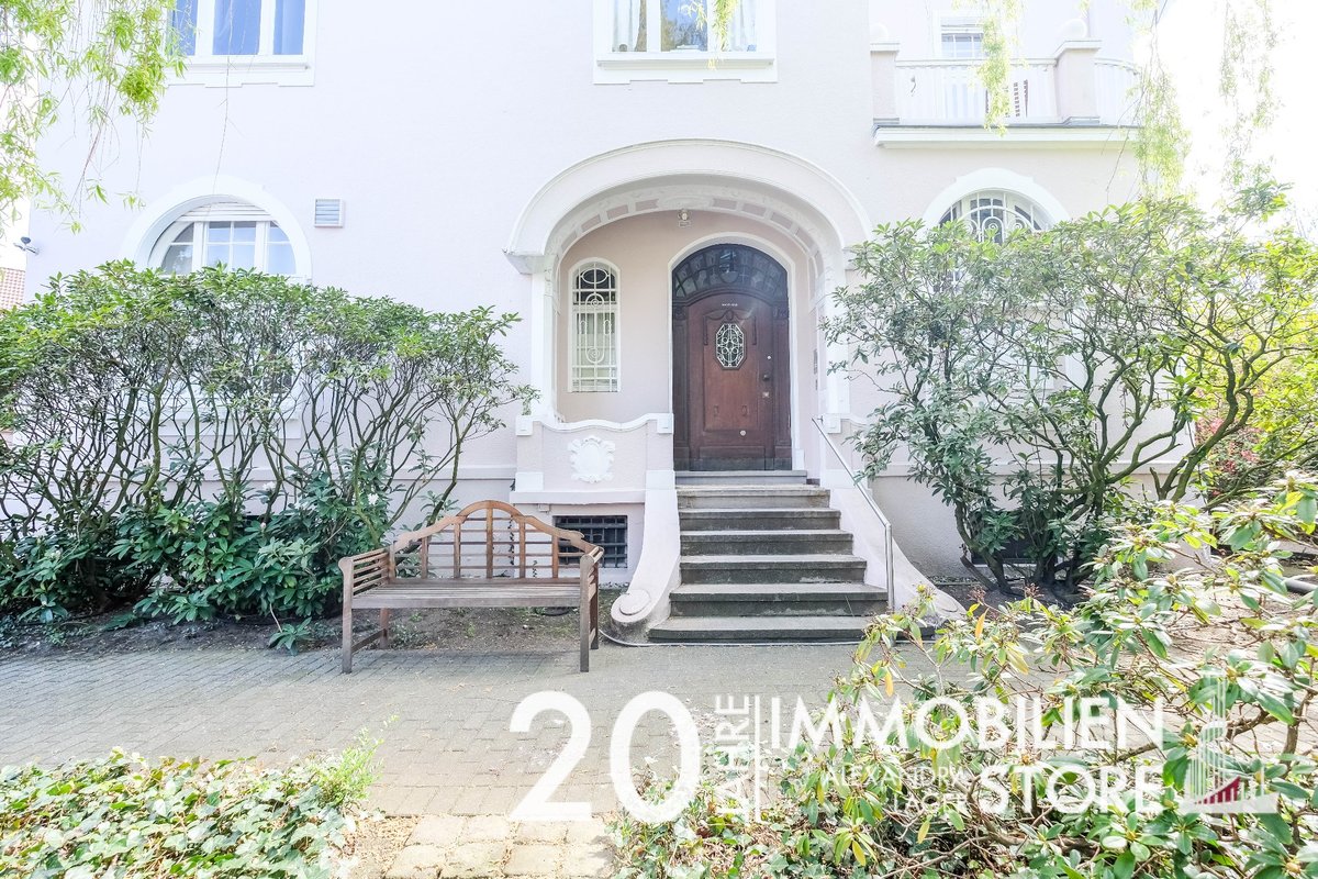 Die hier angebotene ca. 150 m² große und außergewöhnlich schöne Altbauwohnung erwartet Sie im ersten Obergeschoss einer um ca. 1910 errichteten Stadtvilla im Jugendstil mit 3 Wohneinheiten. Die imposante Villa, umgeben von einem Privatpark gehört zweifelsohne zu den besten Adressen und bietet die einmalige Gelegenheit für Ihr künftiges, neues Zuhause, Ihren Firmensitz oder auch beides. Das großzügige Raumkonzept offeriert ideale Gestaltungsfreiheit mit vielfältigen Möglichkeiten für anspruchsvolles Wohnen, sowie eine repräsentative gewerbliche Nutzung. Fantastisch vorstellbar für kreative Inspiration im Homeoffice gleichwohl standesgemäß für jegliche Kanzlei und Mandantschaft. Gleich beim Betreten der Villa werden Sie von einem bezaubernden Entree empfangen: Ein repräsentativer Eingangsbereich geleitet Sie stilvoll ins Anwesen. Über die Treppe im Foyer gelangen Sie zur Wohnung. Diese entfaltet Ihren Charme nicht nur durch Ihre Größe, Ihren tollen Schnitt mit gleich zwei Sonnenbalkonen, sondern auch mit einem wunderschönen Blick in den Park. Insgesamt präsentiert sie sich luftig und hell. Eine imposante Glaswand zum Treppenhaus hin sorgt für einen lichtdurchfluteten Eingangsbereich. Mit 4 Zimmern und ca. 150 qm Wohnfläche haben Sie viel Raum für anspruchsvolle Wünsche! Bis auf das Arbeitszimmer sind alle Hauptzimmer von der Diele aus begehbar. Die Wohnung verfügt über einen hell gestalteten Wohnraum mit Zugang zu einem der beiden Balkone, 2 großzügige Schlafzimmer – davon eins mit Balkon – und ein Arbeitszimmer. Ein weiteres Highlight ist der neu gestaltete Wellnessbereich der beiden Badezimmer. Viel Tageslicht, eine Dusche, eine freistehende Wanne und zwei Waschbecken in stilvollem Design lassen keine Wünsche offen. Die Küche, bietet jedem passionierten Koch die Möglichkeit seine kulinarischen Ideen auszuleben und seiner Leidenschaft nachzugehen. Ihre Gäste werden sich über den frisch zubereiteten Gaumenschmaus freuen. Hier werden Sie sich rundum wohlfühlen.