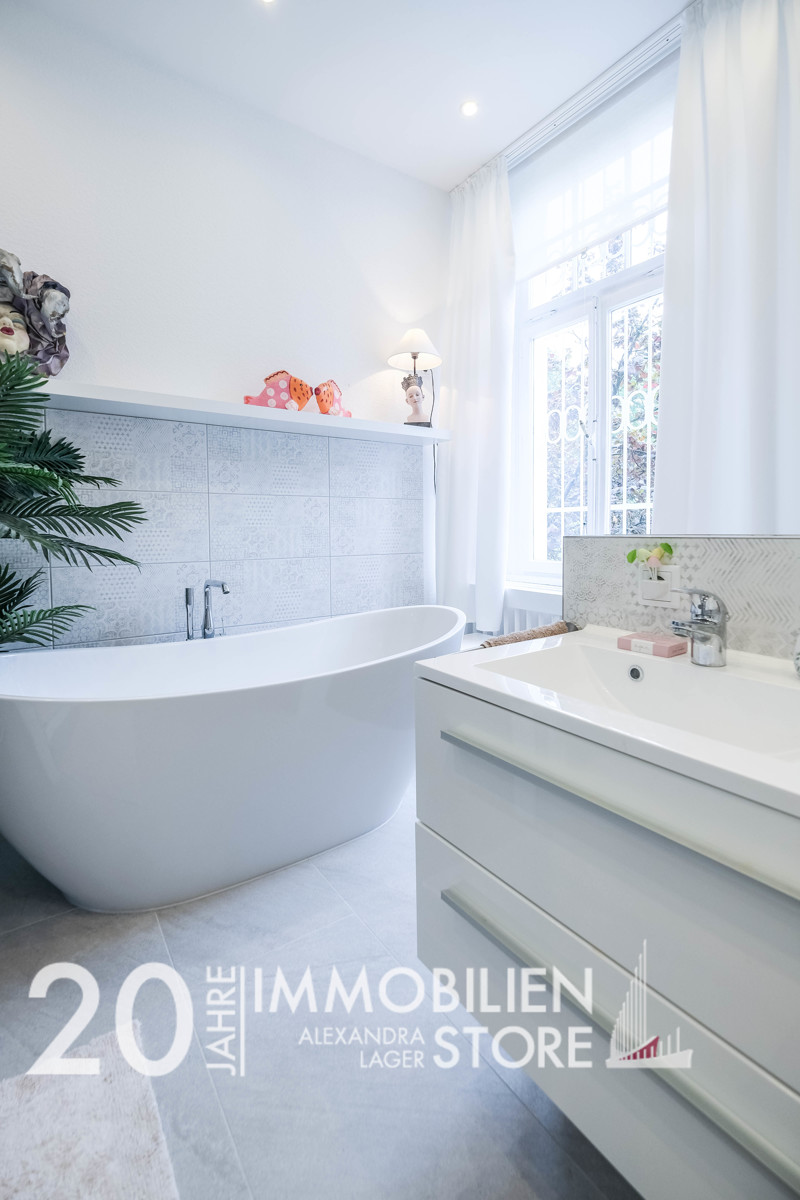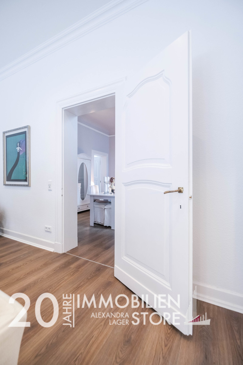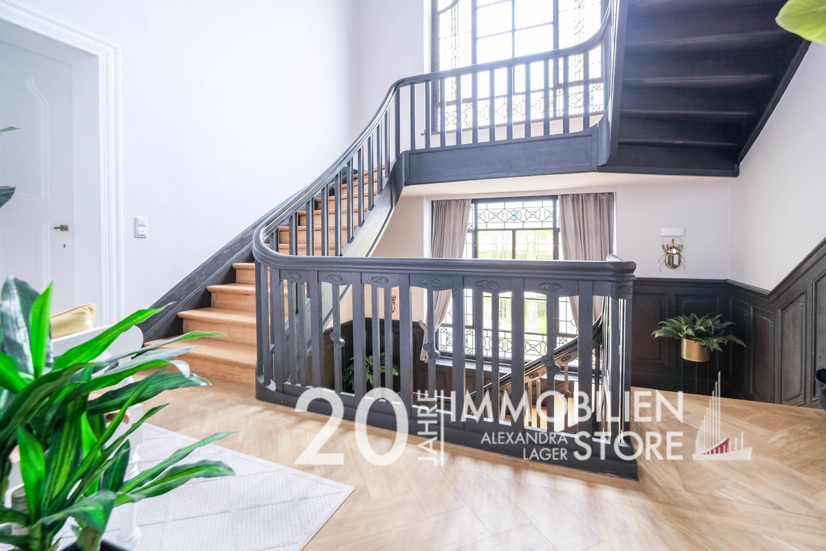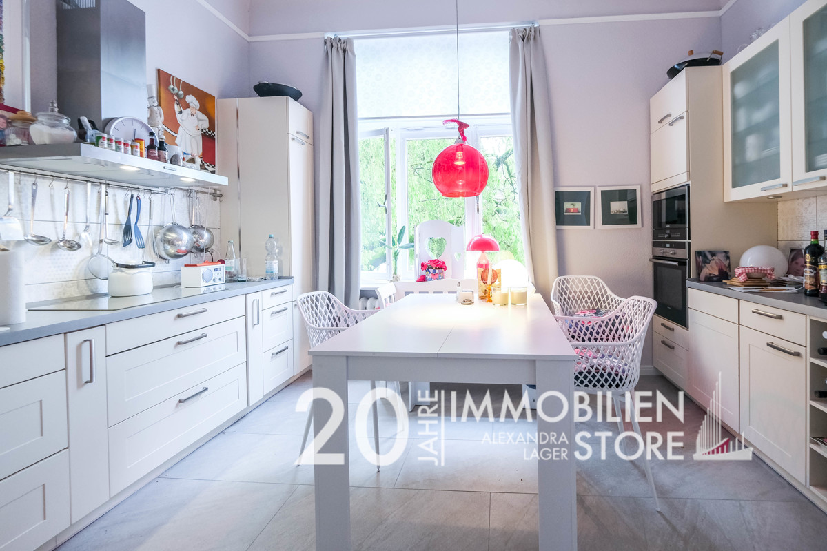 Die hier angebotene ca. 150 m² große und außergewöhnlich schöne Altbauwohnung erwartet Sie im ersten Obergeschoss einer um ca. 1910 errichteten Stadtvilla im Jugendstil mit 3 Wohneinheiten. Die imposante Villa, umgeben von einem Privatpark gehört zweifelsohne zu den besten Adressen und bietet die einmalige Gelegenheit für Ihr künftiges, neues Zuhause, Ihren Firmensitz oder auch beides. Das großzügige Raumkonzept offeriert ideale Gestaltungsfreiheit mit vielfältigen Möglichkeiten für anspruchsvolles Wohnen, sowie eine repräsentative gewerbliche Nutzung. Fantastisch vorstellbar für kreative Inspiration im Homeoffice gleichwohl standesgemäß für jegliche Kanzlei und Mandantschaft. Gleich beim Betreten der Villa werden Sie von einem bezaubernden Entree empfangen: Ein repräsentativer Eingangsbereich geleitet Sie stilvoll ins Anwesen. Über die Treppe im Foyer gelangen Sie zur Wohnung. Diese entfaltet Ihren Charme nicht nur durch Ihre Größe, Ihren tollen Schnitt mit gleich zwei Sonnenbalkonen, sondern auch mit einem wunderschönen Blick in den Park. Insgesamt präsentiert sie sich luftig und hell. Eine imposante Glaswand zum Treppenhaus hin sorgt für einen lichtdurchfluteten Eingangsbereich. Mit 4 Zimmern und ca. 150 qm Wohnfläche haben Sie viel Raum für anspruchsvolle Wünsche! Bis auf das Arbeitszimmer sind alle Hauptzimmer von der Diele aus begehbar. Die Wohnung verfügt über einen hell gestalteten Wohnraum mit Zugang zu einem der beiden Balkone, 2 großzügige Schlafzimmer – davon eins mit Balkon – und ein Arbeitszimmer. Ein weiteres Highlight ist der neu gestaltete Wellnessbereich der beiden Badezimmer. Viel Tageslicht, eine Dusche, eine freistehende Wanne und zwei Waschbecken in stilvollem Design lassen keine Wünsche offen. Die Küche, bietet jedem passionierten Koch die Möglichkeit seine kulinarischen Ideen auszuleben und seiner Leidenschaft nachzugehen. Ihre Gäste werden sich über den frisch zubereiteten Gaumenschmaus freuen. Hier werden Sie sich rundum wohlfühlen.